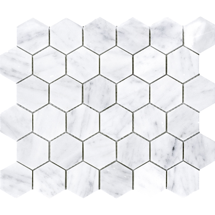 Mozaicuri din piatra naturala oferind diverse formate si stiluri in nuante de alb si gri.