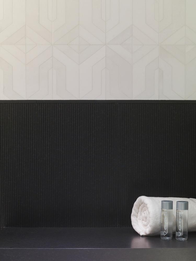 Mozaic mat-lucios de diverse formate si stiluri in nuanta de alb.